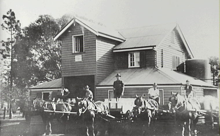 A 1926 view of Cawdor Creamery with deliveries of milk from local dairy farms