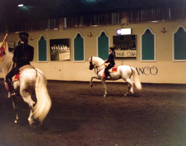 The El Caballo Blanco complex opened in April 1979 at Catherine Fields. The main attraction was a theatrical horse show presented with Andalusian horses, which was held daily in the large 800-seat indoor arena. .