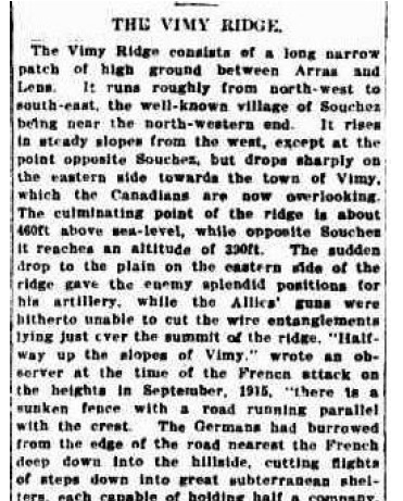 Article on Vimy Ridge from The Sydney Morning Herald (NSW : 1842 – 1954) Wed 11 Apr 1917 Page 1 Trove NLA nla.news-article15706380.3