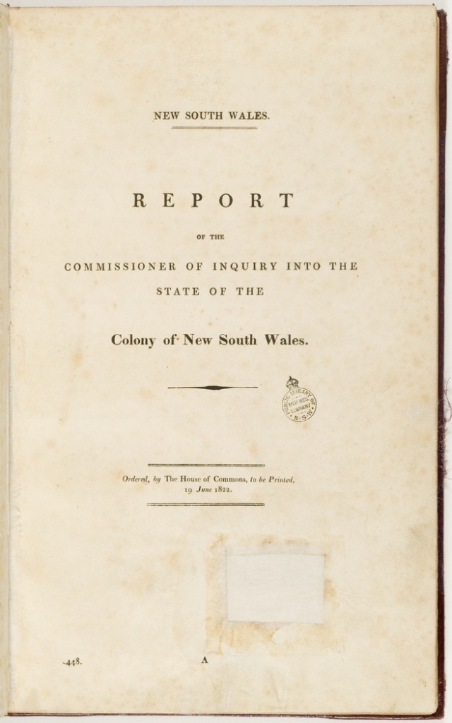(JT Bigge, Report of the Commissioner of Inquiry on the state of agriculture and trade in the colony of NSW, 1822, Vol 1)