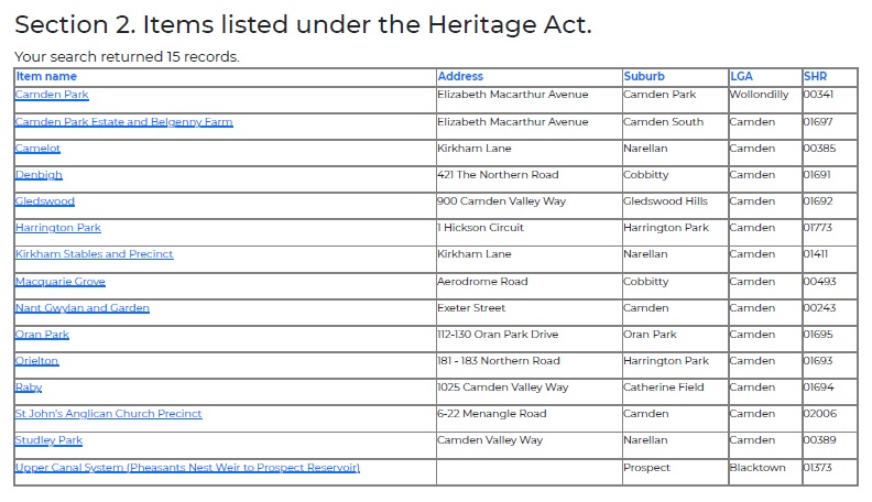Recently I needed to consult Camden’s heritage inventory list for a research project. I also consulted similar lists for Campbelltown and Wollondilly LGAs. They were easy to find. Camden’s list was mysteriously hiding somewhere. It had to exist. The council is obliged to put one together by the state government. But where was it? Do you know where Camden Council’s heritage inventory is to be found? I did not know. So off I went on a treasure hunt. The treasure was the heritage list.