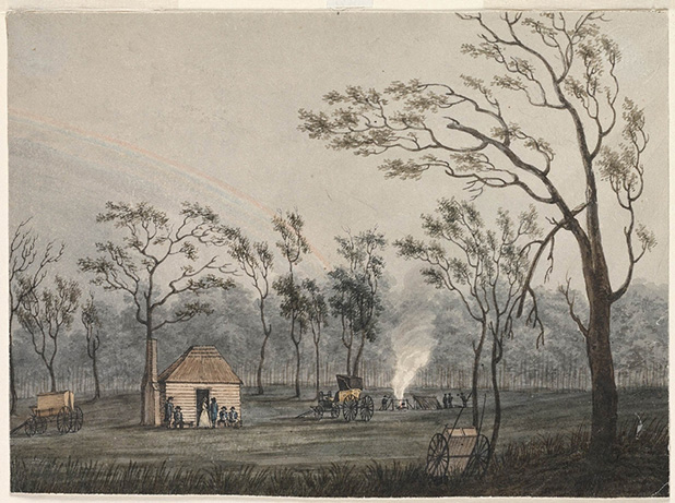 The bush carpenters were amongst the first in the Camden area to erect building structures. Like other rural areas of Australia, the Camden area’s landscape has been defined by the bush carpenter’s huts and sheds. One example was illustrated in Peter Mylrea’s Camden District (2002), the so-called Government Hut erected at the Cowpastures in 1804.