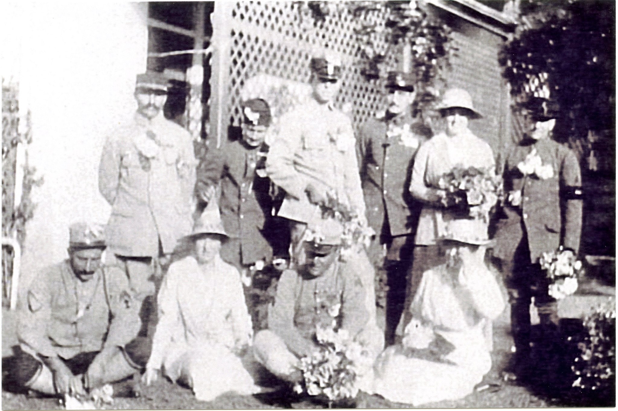 After their morning visit at Camden Park, the soldiers were driven into Camden, where they were entertained at a garden party on the lawn at the Commercial Bank in Camden’s main street. They took afternoon tea and were introduced to Camden’s mayor, WF Peters, his wife, over 25 members of the Camden Red Cross and other local identities by Sibella Macarthur Onslow. Several toasts and speeches were followed by rousing cheers of thanks, after which they boarded the train for Sydney. (Sydney Morning Herald 15 October 1917; Camden News, 18 October 1917.)