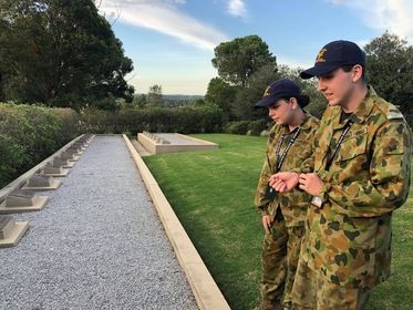 The Camden War Cemetery contains the graves of seventeen Royal Australian Air Force servicemen, four army personnel and two Royal Air Force servicemen. The headstones are lined up in an North-South configuration, with the graves facing East-West. The graves are surrounded by a border of oleanders and a bottlebrush and dominated by a single majestic tea tree. The cemetery is well kept and has a pleasant outlook.