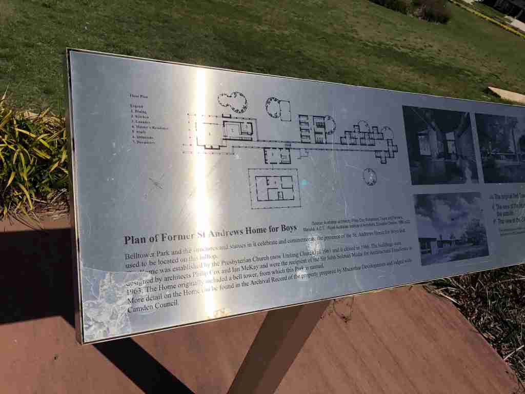 Belltower Park and the structures and statues in it celebrate and commemorate the presence of the St Andrews Home for Boys that used to be located on this hilltop.