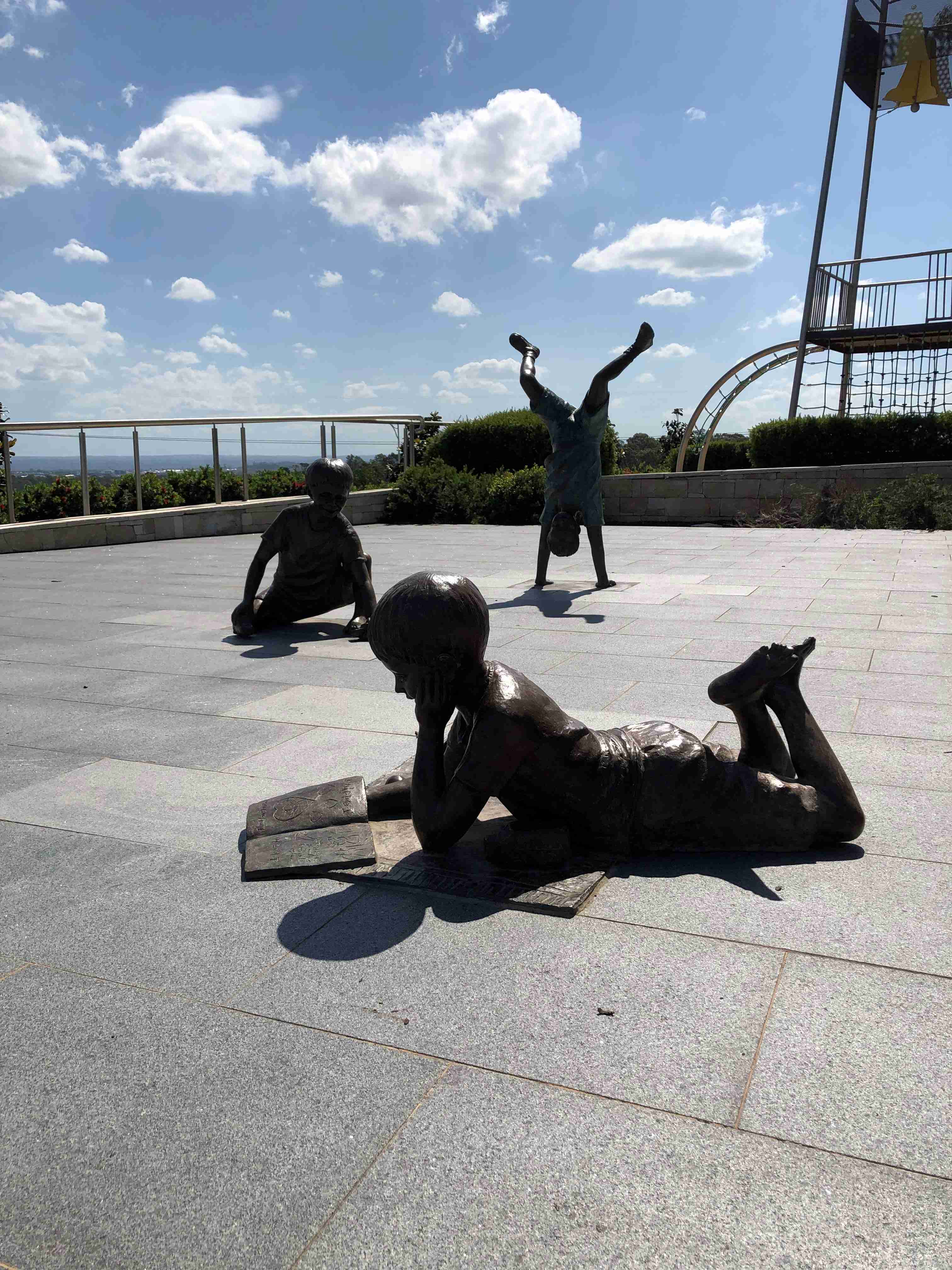 At the top of the hill in the suburb of Emerald Hills in Leppington, NSW, is a small park called the Bell Tower Park, with three bronze statues of small boys.