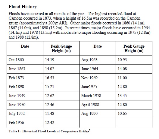 Historic river heights at the Cowpasture Bridge, Camden.