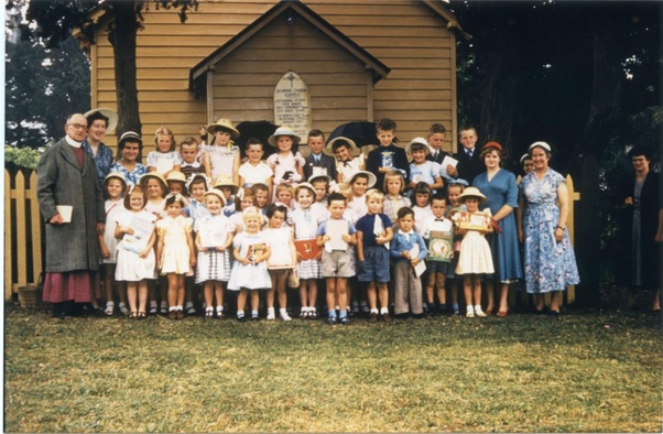 The Sunday School continued to be an essential part of the church’s activities, and in 1933 the Camden press reported that the children of St Mark’s Sunday School held their picnic in Mr Bruchhauser’s ‘top paddock’. Showers did not let up until after lunch, but nothing was ‘daunted’, and the picnic was set up by ‘teachers and helpers in the church. ‘A very happy afternoon was spent by all’ after the ground dried out with ‘games and races’. (Camden News, 8 June 1933)