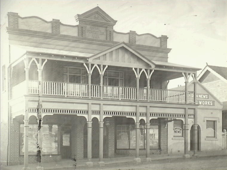 The upstairs part of the building had a supper room described as ‘a perfect room for socials and meetings, well fitted with two fireplaces, windows, and doors leading onto a large balcony commanding a splendid view of the town.’ (CN, 4 June 1908)