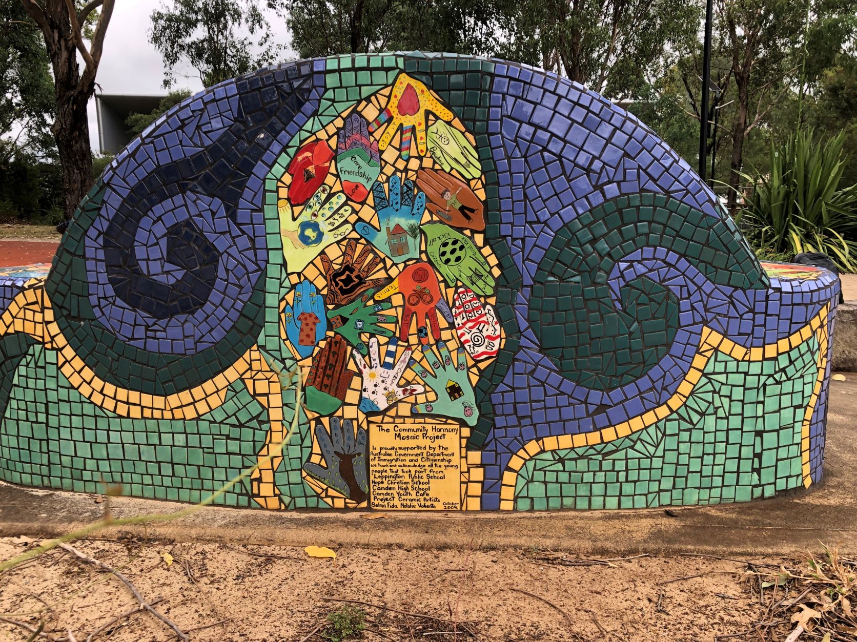 The mosaic was commissioned in 2009 as The Community Harmony Mosaic Project, funded by the Australian Government Department of Immigration and Citizenship.