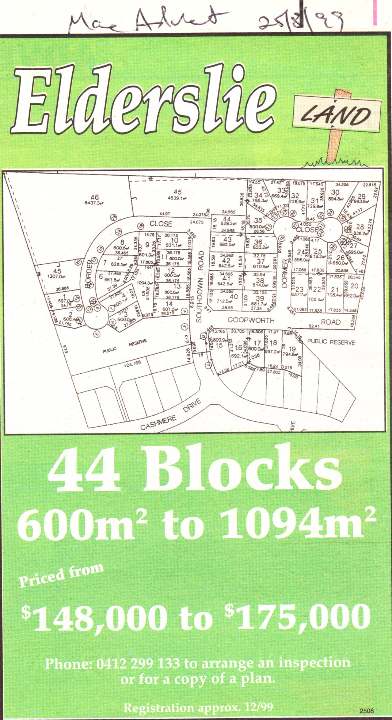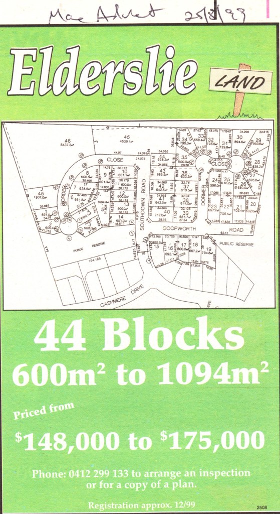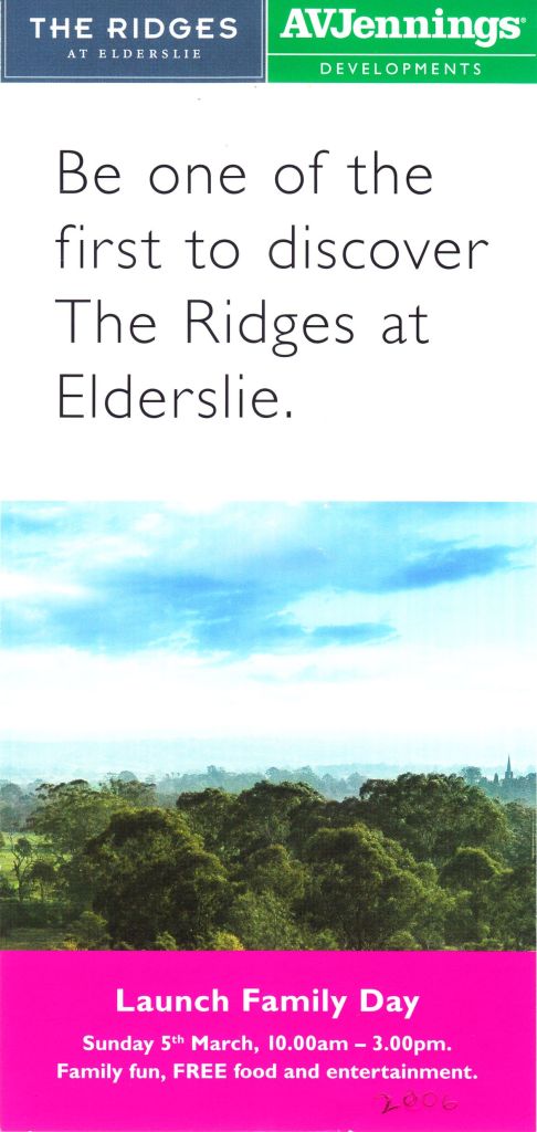 The names given Elderslie land releases range from the commodification of the rural aesthetic of the local area to a locality name, names of local identities or hints of the historical past.