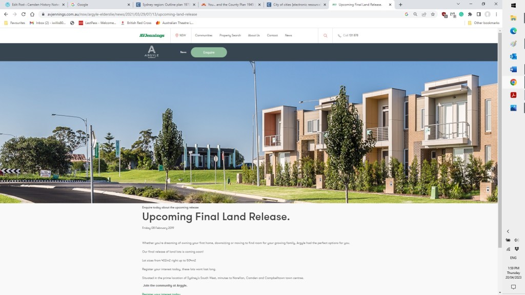 The Elderslie area was included in the next planning iteration with the Askin Government’s 1968 Sydney region: Outline plan 1970-2000 A.D.: a strategy for development. This plan led to the 1973 New Cities of Campbelltown Camden Structure Plan and the Commonwealth Government’s Macarthur Growth Centre. This plan offered flexibility and changes and turned into a developer’s dream. Sydney’s urban sprawl continued to spread, and nothing much eventuated at Elderslie. (Ashton & Freestone 2008)
