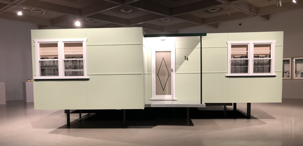 At the centre of the exhibition is the imposing spectacle of a 75%-scale replica of a fibro house.