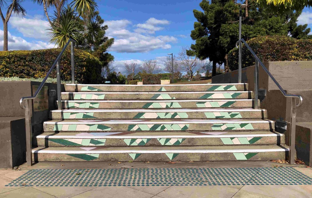 In addition to the main exhibition, The Campbelltown Arts Centre has commissioned a site-specific art installation on the stairs and front wall of the gallery amphitheatre called ‘Flawed Plans’.