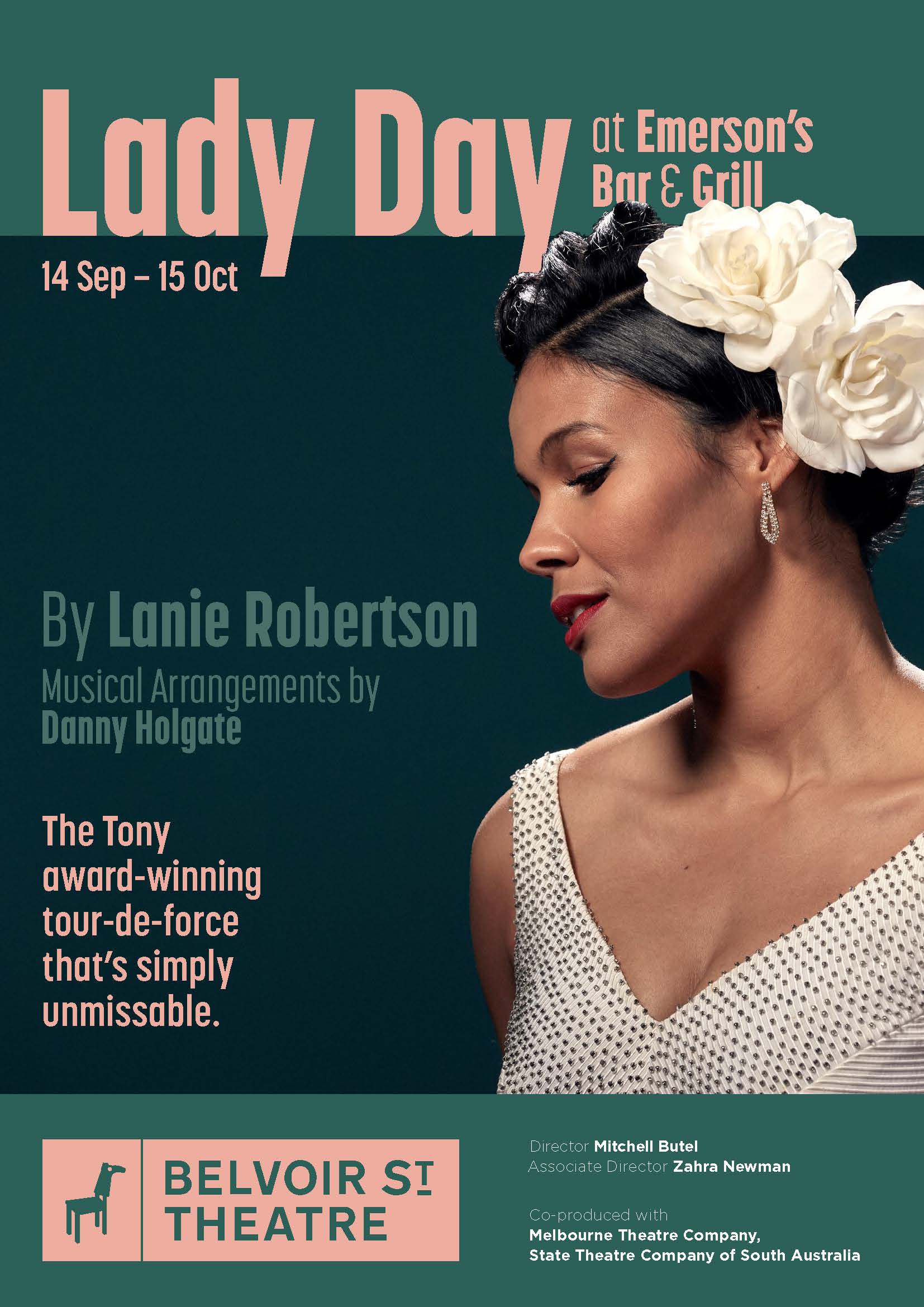 The show portrayed the life and times of African-American jazz singer Billie Holiday in a performance called ‘Lady Day at Emerson’s Bar and Grill’. Originally performed in New York Off-Broadway Vineyard Theatre in 1986 at a venue renowned for staging provocative, cutting-edge new plays and musicals. This version of Lady Day is a co-production between the Melbourne Theatre Company and the State Theatre Company of South Australia.