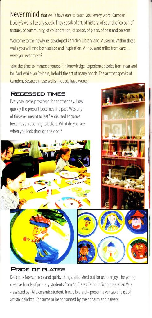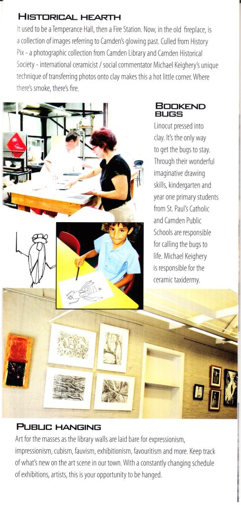 The state government and Camden Council spent around $2.5 million to bring Camden Library up to contemporary library floor space requirements. This was achieved by enclosing a laneway between the former fire station and school of arts (library) buildings.