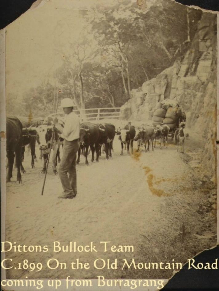 Bullock teams occasionally appeared on the Yerranderie Road, carting cedar logs extracted from the Kowmung area of the Blue Mountains (1911).