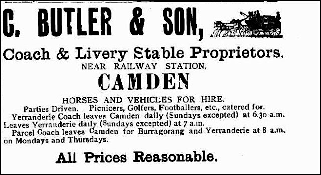 There was a daily mail coach that ran between Camden and Yerranderie. The passenger fare was 12/6 one-way from Yerranderie to Camden (1908), which had come down from a height of 30 shillings.