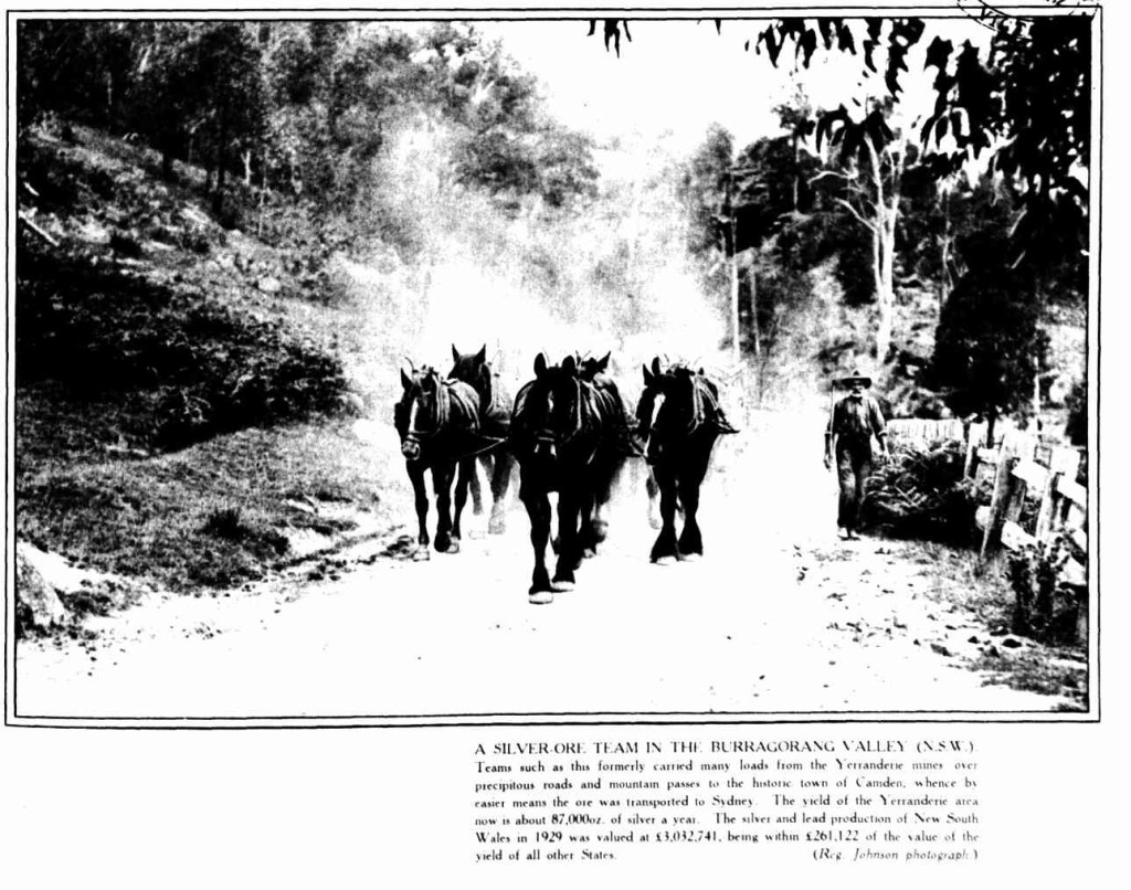 In 1908, there were 54 horse teams on the Yerranderie Road carting to the Camden railhead.