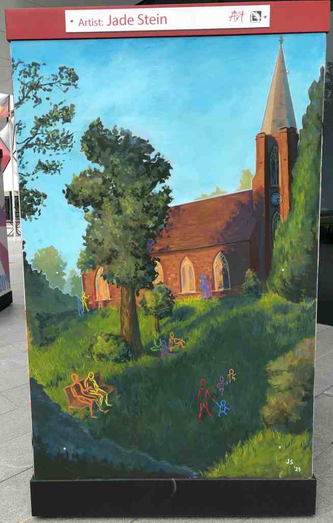 With this painting, I wanted to visualise the warmth and community that can be found in churches all across the Camden LGA. To do this, I gave my impression of a familiar building, St John’s Anglican Church, surrounded by a diversity of people spending time with each other in the afternoon light. Although the historical structure is almost 200 years old, it is still a place of fellowship for the community. I also wanted to emphasise the role that any place of meeting or worship can have in bringing people together and developing a sense of belonging and connection.