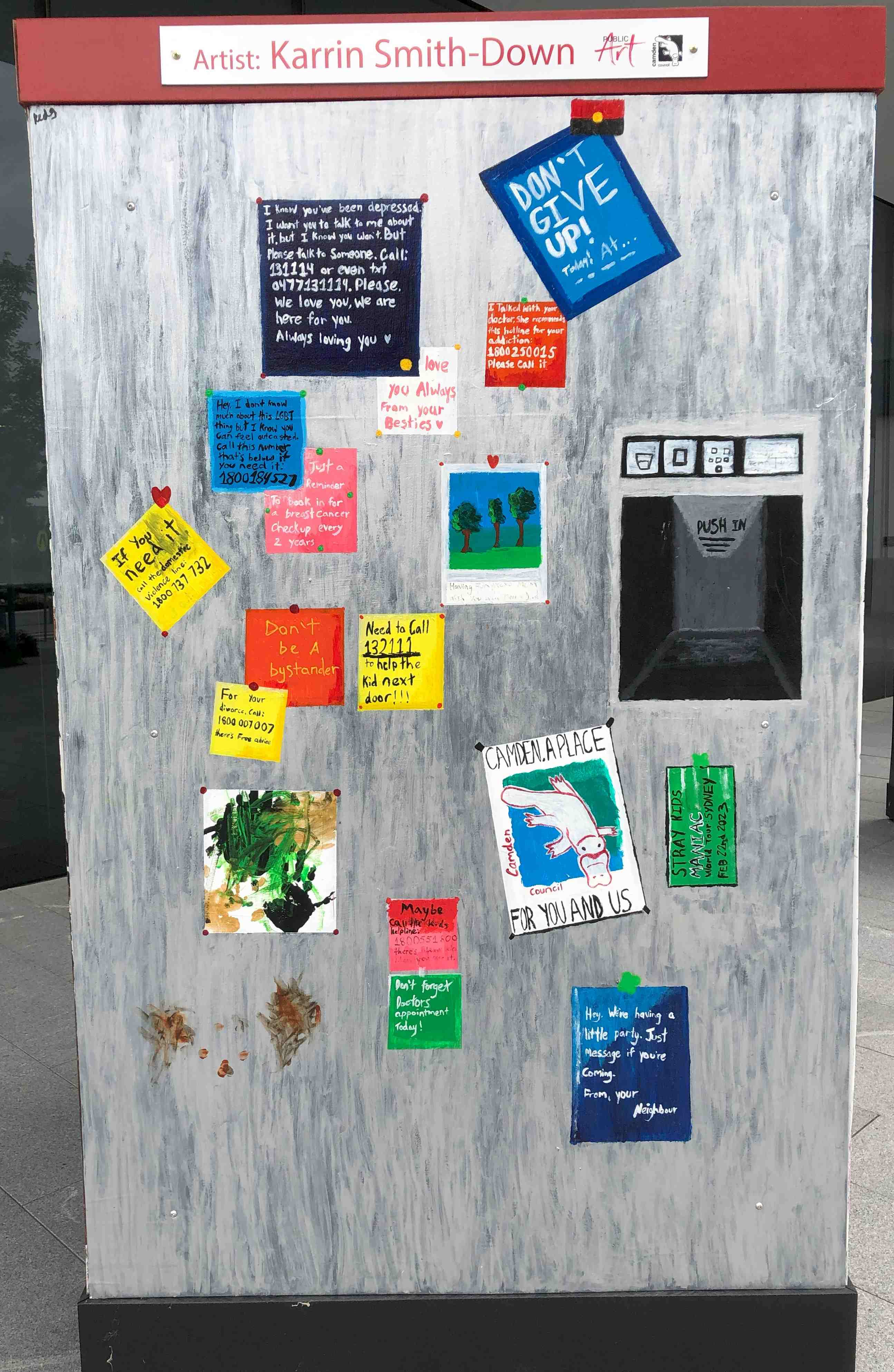 My artwork is called ‘The Fridge’. Members of the local community may have personal issues and concerns, but not many know how to reach out for help. For this artwork, I convey services and ways to reach out through post-it notes on a fridge, which is where people put most of their important things.