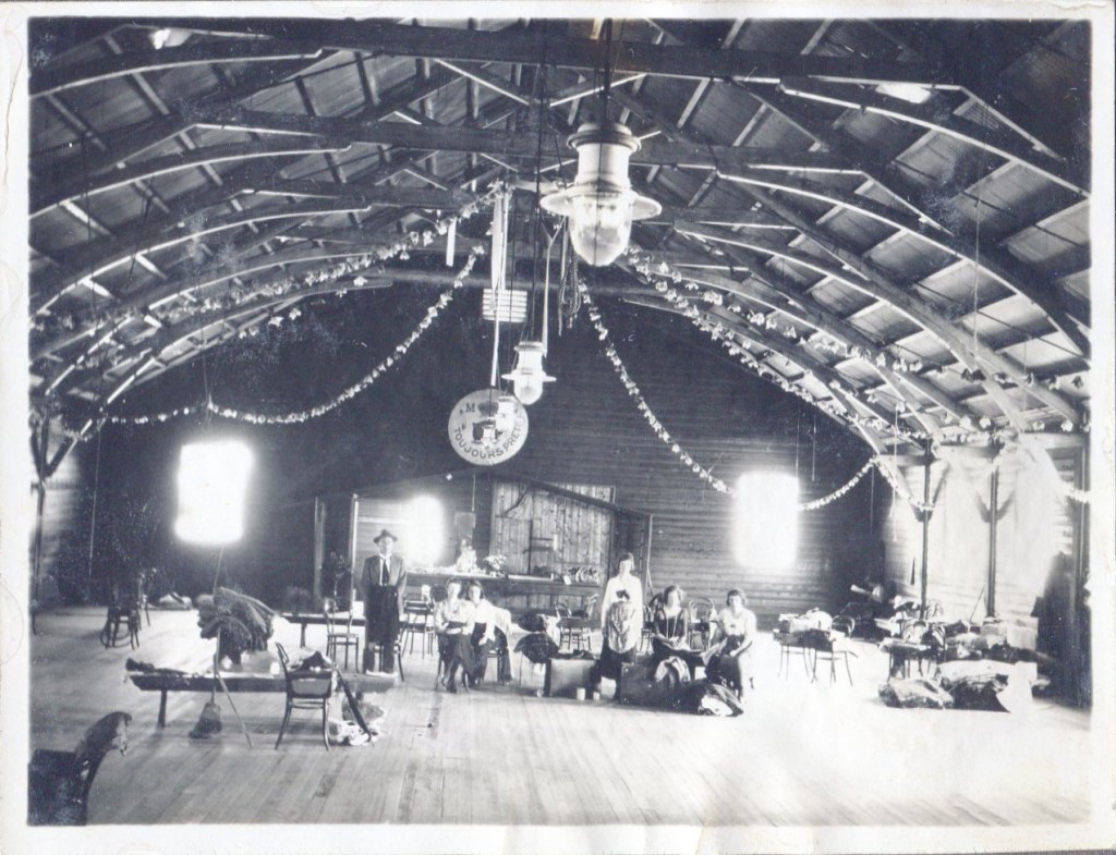 In the agricultural hall, cubicles were constructed using ‘yards of hessian…holding two or three girls’. The girls gave the cubicles names such as ‘Giggleville’, ‘The Better Ole’, and ‘The Last Hope’, and there were two long corridors called ‘George Street’ and ‘Pitt Street’. (SMH, 8 June 1921)