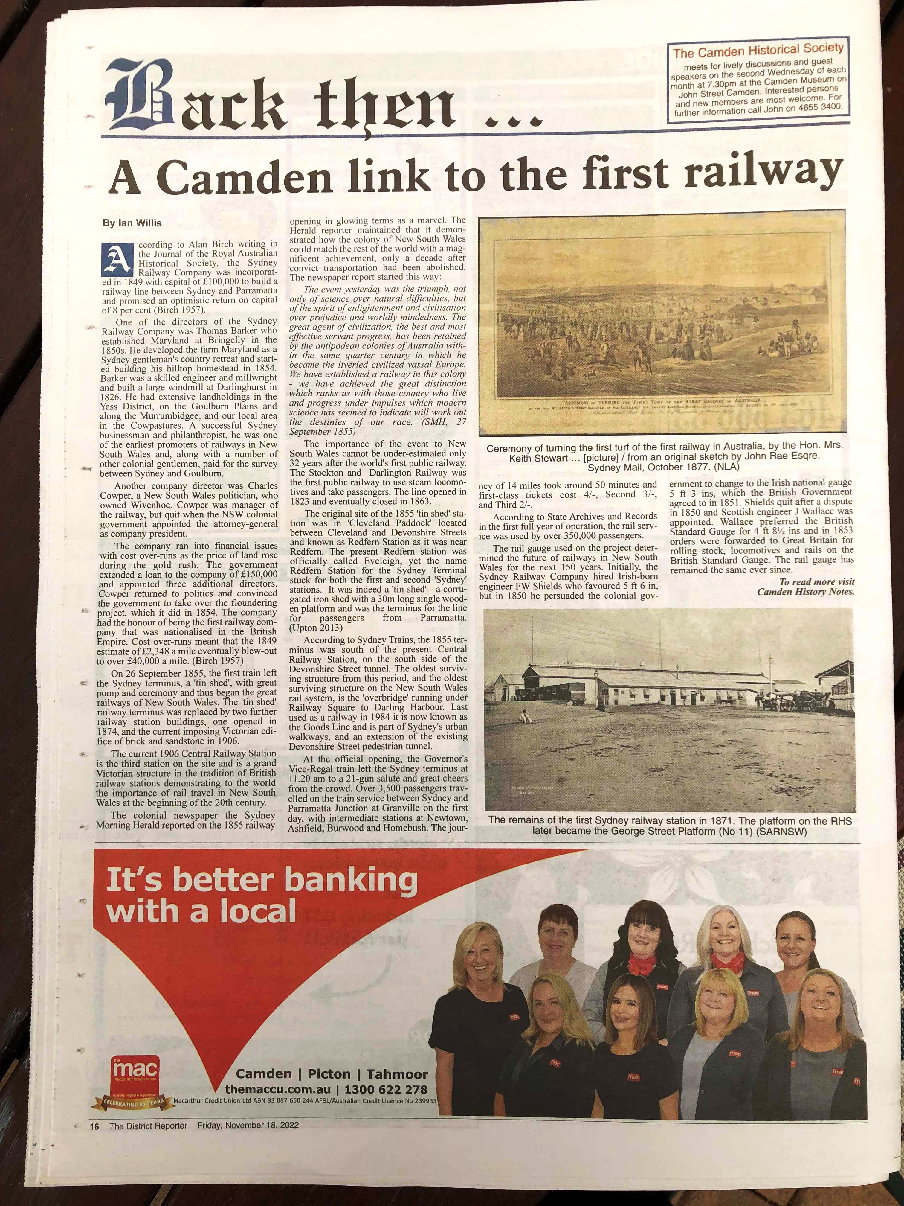 Camden storyteller Ian Willis (2023a) has written extensively about the local history of the Camden area, with an outstanding example being the Camden History Notes blog. He has published many other articles and stories in newspapers, newsletters, journals and books (2023b).