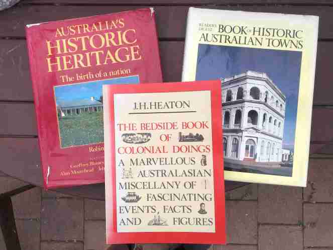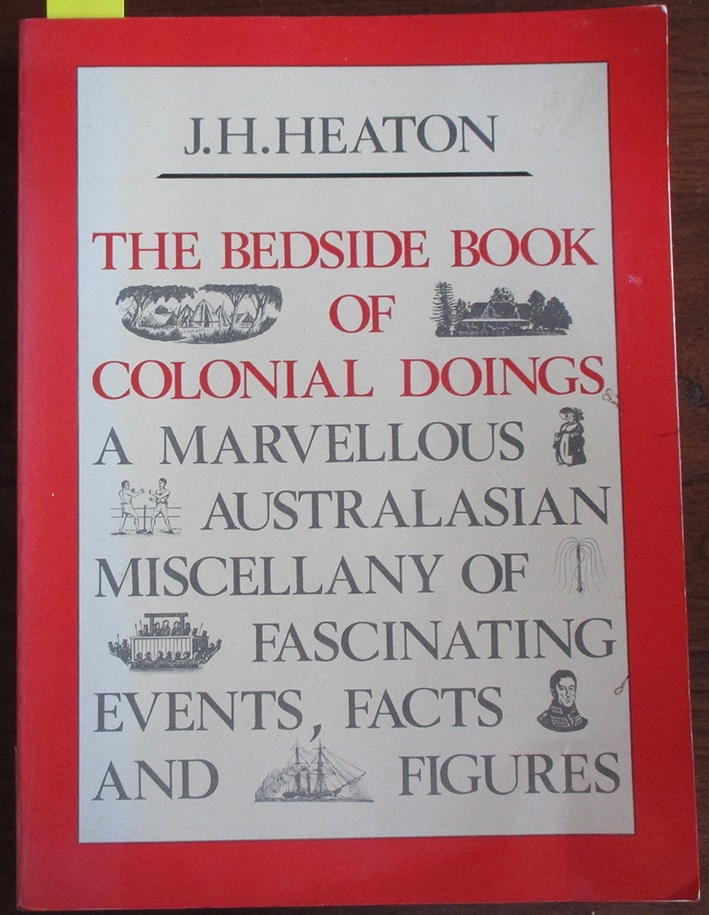 Heaton’s Bedside Book of Colonial Doings (1984) is a reproduction of the 1879 book by JH Heaton, Australian dictionary of dates and men of the time : containing the history of Australasia from 1542 to May, 1879.