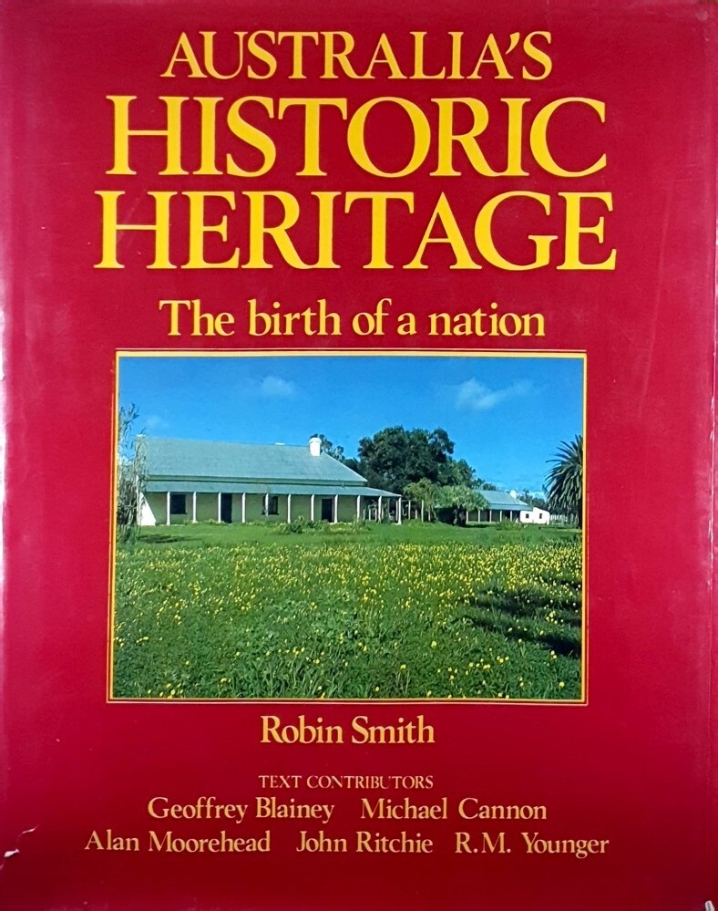 Smith, Robin (ed), Australia’s Historic Heritage, The Birth of a Nation. Melbourne: Currey O’Neil, 1981, first published as The Birth of Australia. Melbourne: Currey O’Neil, 1978. 223pp, 265 colour plates, ISBN 0859021602. Hardcover. Quarto