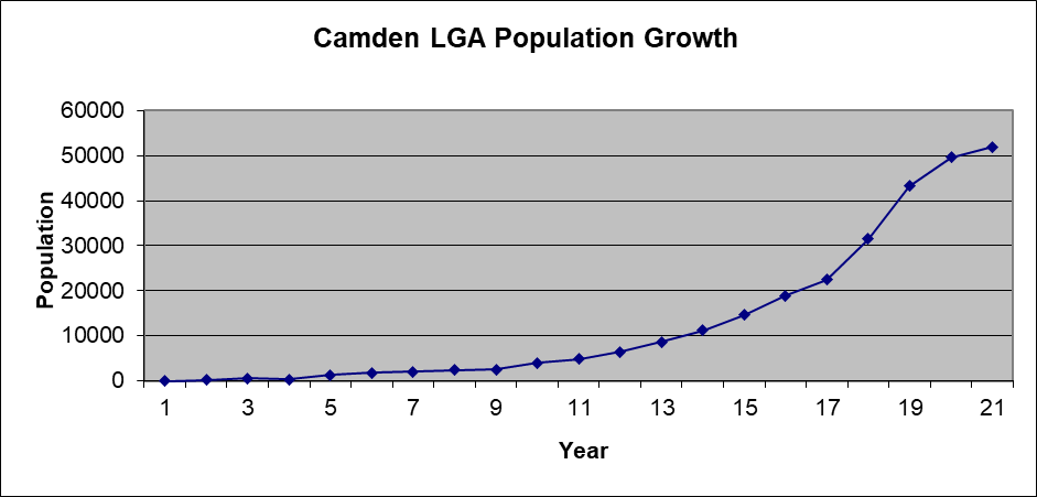 Between the mid-1940s and the early 1970s, the population of the Camden area doubled from around 3500 in the mid-1940s to over 11,000 in the early 1970s.