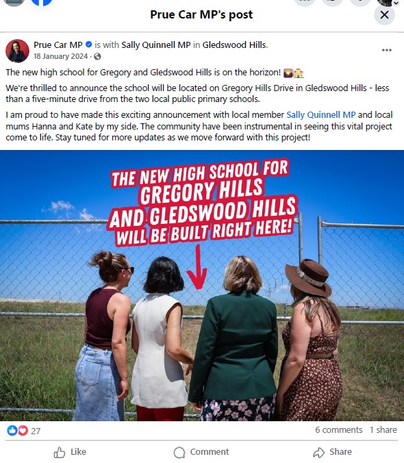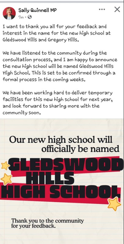 Sometimes, new residents have a win. Out at Gledswood Hills, the Minns Labor Government announced a new high school after previous Coalition Governments dragged their feet on the issue for many years.