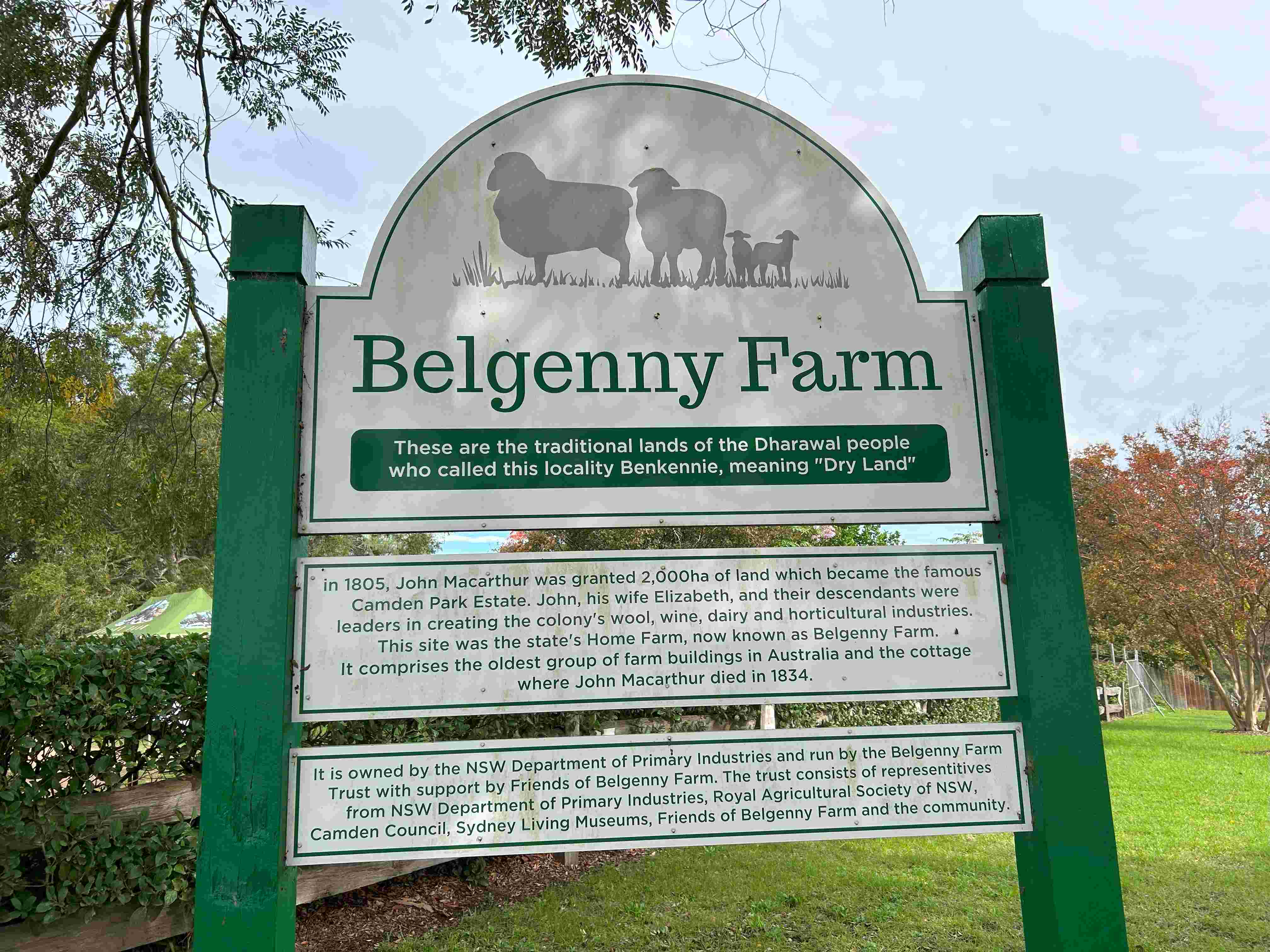 Belgenny Farm was established by John and Elizabeth Macarthur in 1805 and contains the earliest collection of colonial farm buildings in Australia. It was part of the original 2,000 hectare (5,000 acre) Camden property granted to John Macarthur in 1805 and was the home farm for John and Elizabeth Macarthur and their children.