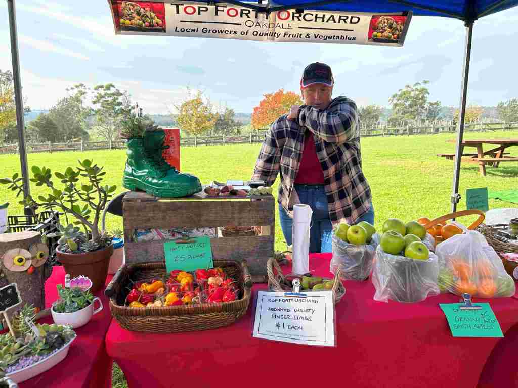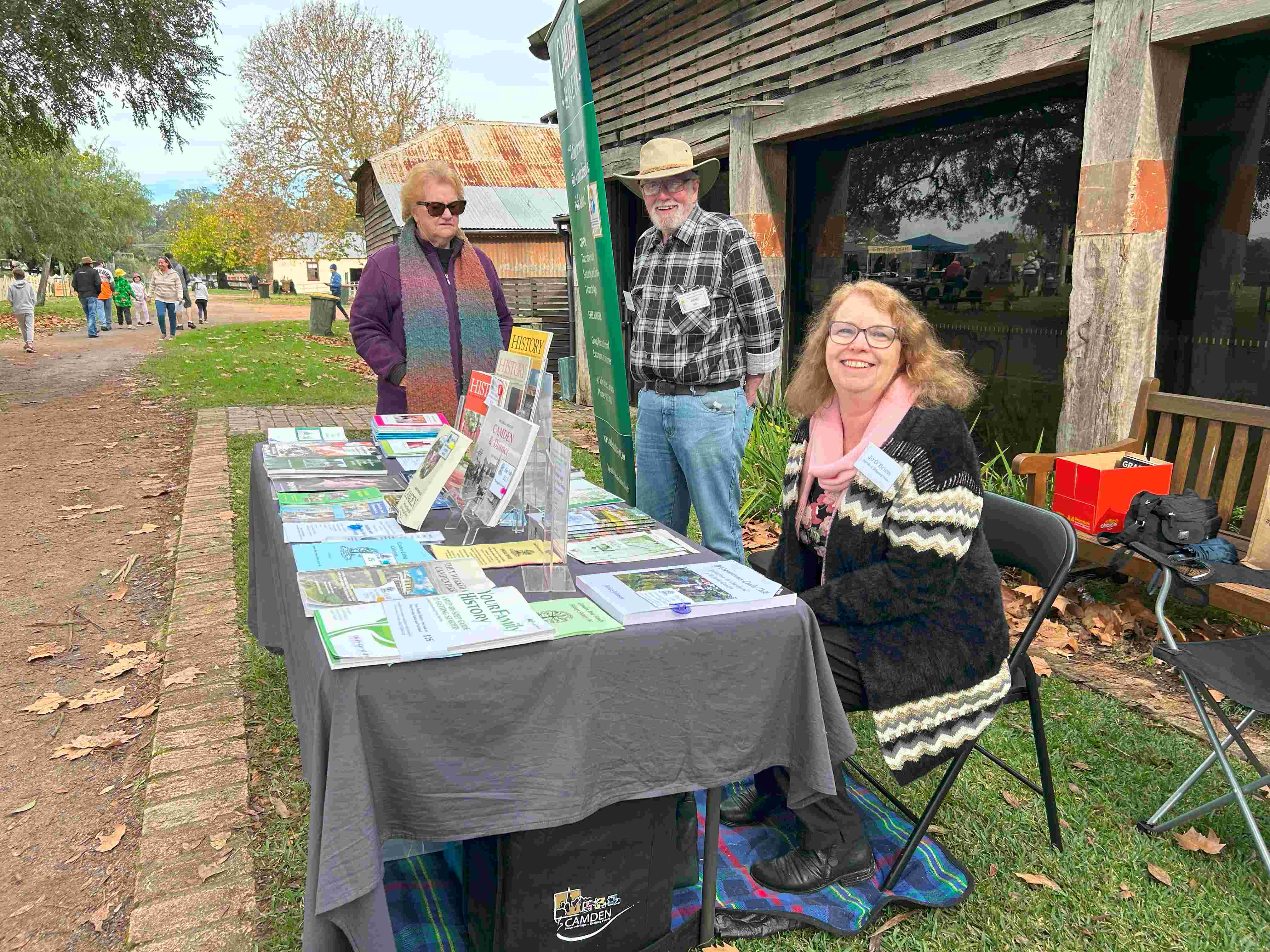 There were various stalls, including the Camden Historical Society, Camden Area Family History Society, Menangle Steamers, Camden Woodturners, a knitting stall, and a produce stall.