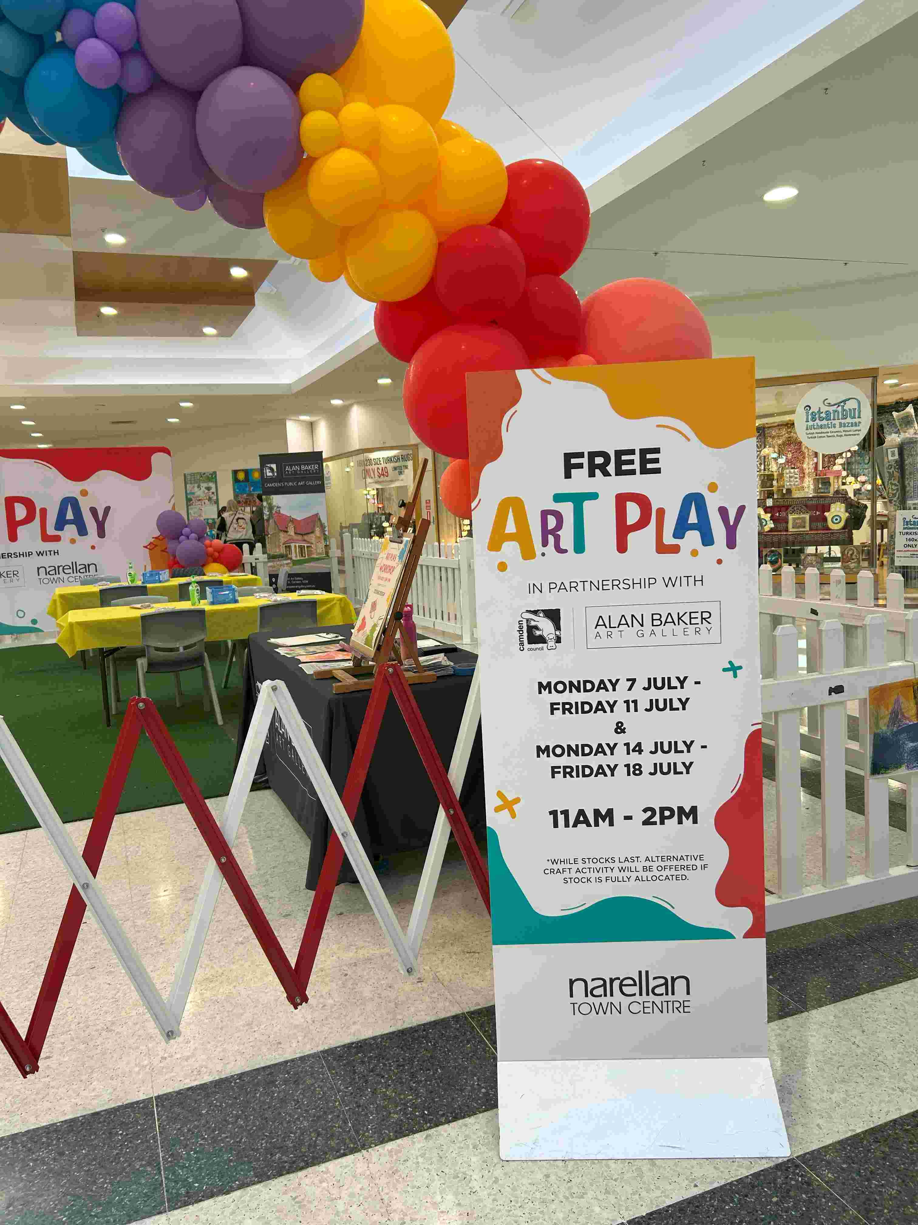 The Art Play took place in the Centre Court (near Woolworths) of the shopping centre. The sessions were free, and no bookings were required.