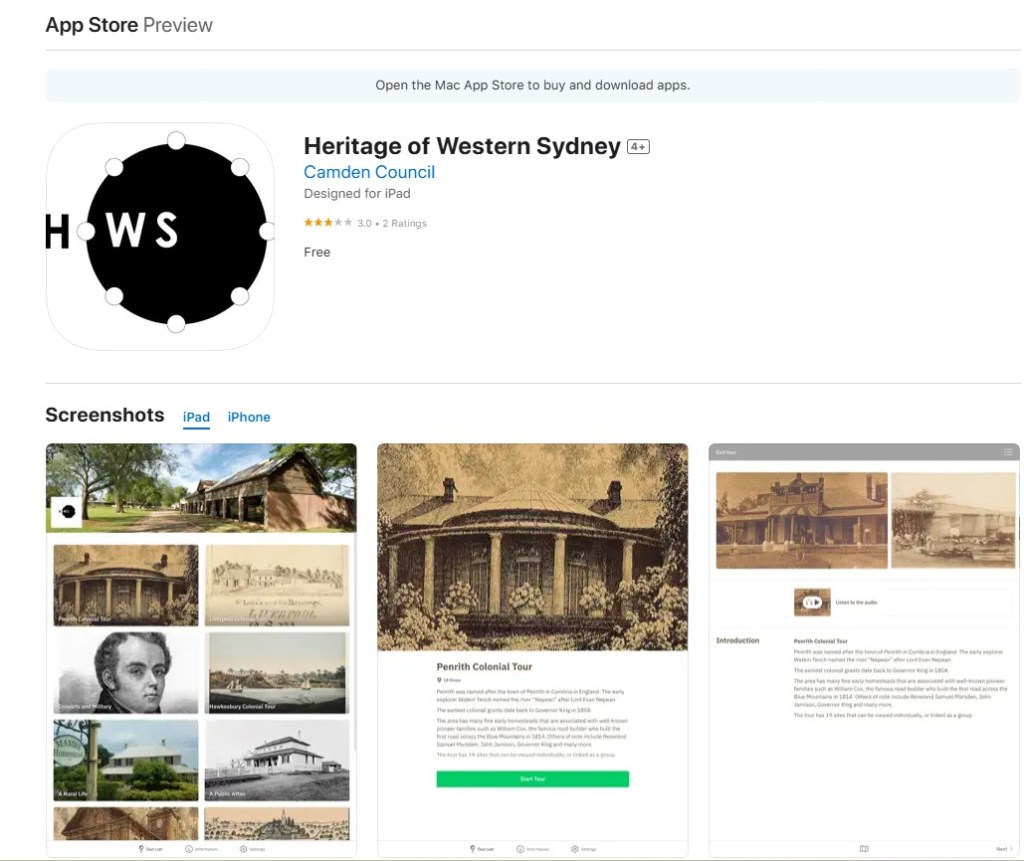 Camden Council et al, (2016). Heritage of Western Sydney. [online] App Store. Available at: https://apps.apple.com/au/app/heritage-of-western-sydney/id1135328857 [Accessed 19 Sep. 2025].