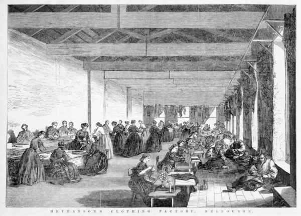 There was a report in the Melbourne Argus about the sweat-shop conditions in sewing factories in Ballarat. The young girls, aged 13-15, were working in factories with 200 to 300 sewing machines, often working excessively long hours, with some working from 9 am to 7 pm or later. The girls complained of being dizzy and having headaches. (Argus (Melbourne), Monday 12 May 1873, p 6)