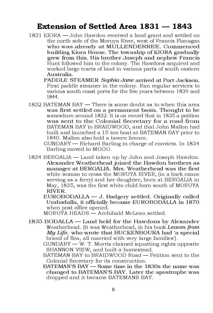 Magee, Stuart 2006. The History of Moruya. Moruya District Historical Society, Moruya. Online at https://mdhs.org.au/history.html