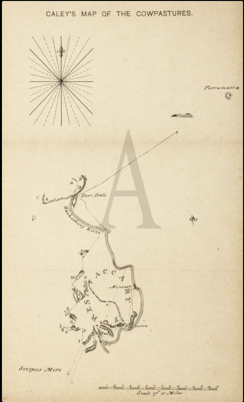 James Jervis wrote in the Journal of the Royal Australian Historical Society that George Caley journeyed to the Cowpastures in 1804 and wrote a report called “A journey to ascertain the Limits or Boundaries of Vaccary Forest” (1804).