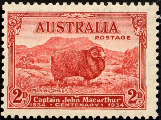 John Macarthur is credited with establishing fine wool as a key industry in New South Wales. During the interwar period, it was claimed that he was the father of the Australian wool industry. While significant, his contributions are part of a larger narrative involving many key figures in the industry. His legacy includes commemorative postage stamps, as well as his portrayal in literature and festivals celebrating wool production.