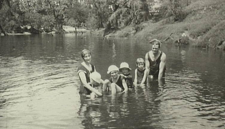 The Yewen family at the Cobbitty Weir in 1945 (Camden Images)
